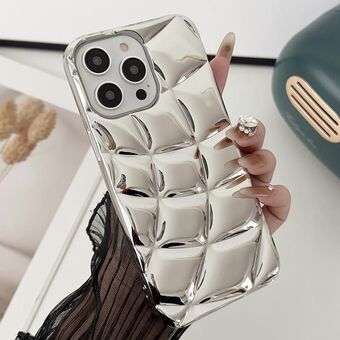 Θήκη τηλεφώνου για iPhone 14 Pro, καμπυλωτή, καρό, με μεταλλικό χρώμα και επικάλυψη TPU (Ασημί)