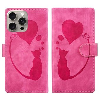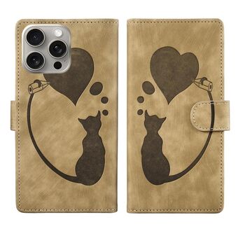 Θήκη τηλεφώνου από δέρμα με ανάγλυφο σχέδιο καρδιάς και γάτας για iPhone 14 Pro (Βερίκοκο)