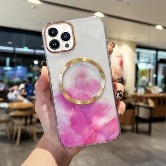 Θήκη τηλεφώνου για iPhone 14 Pro, διαφανής με σχέδιο μάρμαρου και MagSafe (Κόκκινη)