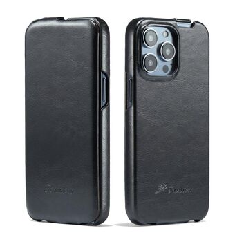 Θήκη τηλεφώνου κάθετης αναδίπλωσης από δερματίνη PU με υφή λαδιού και κεριού Fierre Shann για iPhone 14 Pro (Καφέ) (FIERRE SHANN)