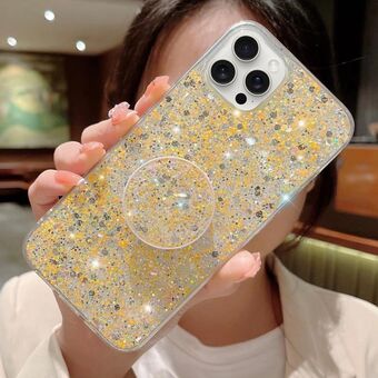 Θήκη κινητού τηλεφώνου iPhone 14 Pro με σπινθηροβόλο σχέδιο αστέρων, στρογγυλή βάση, ρητίνη εποξειδικής και TPU (Κίτρινο)