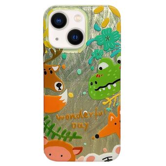For iPhone 14 Double Sided IMD Full Coverage TPU Phone Case(Green Dinosaur Fox Tail)