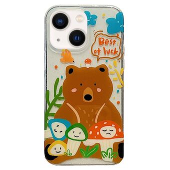 For iPhone 14 Double Sided IMD Full Coverage TPU Phone Case(Brown Bear Smile Face Crying Face)