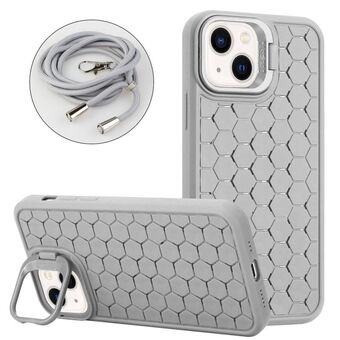For iPhone 14 Honeycomb Radiating Holder TPU Phone Case with Lanyard(Grey)