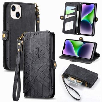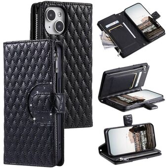 For iPhone 14 Glitter Lattice Zipper Wallet Leather Phone Case(Black)