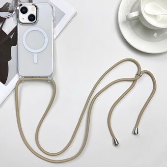For iPhone 14 MagSafe Magnetic PC + TPU Phone Case with Lanyard(Khaki)