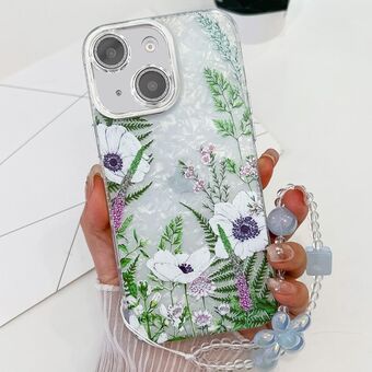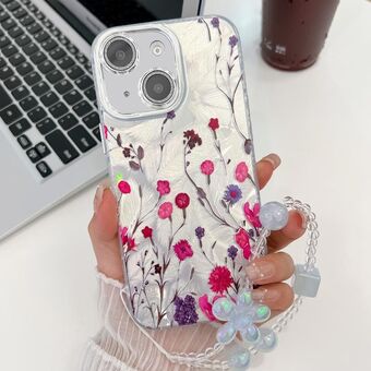 For iPhone 14 Electroplating Flowers Plants Texture Wristband TPU Phone Case(Wildflower FL2)