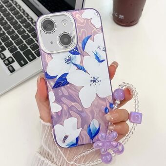 For iPhone 14 Electroplating Flowers Plants Texture Wristband TPU Phone Case(Azalea FL4)