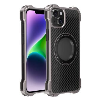 For iPhone 14 R-JUST RJ51-1 Hollow Rotating Holder MagSafe Magnetic Metal Phone Case(Silver Grey) (R-JUST)