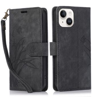 For iPhone 14 Orchid Butterfly Embossed Leather Phone Case(Black)