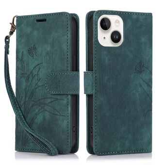 For iPhone 14 Orchid Butterfly Embossed Leather Phone Case(Green)