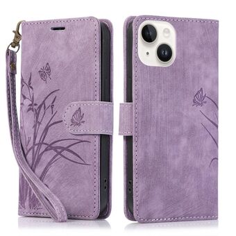 For iPhone 14 Orchid Butterfly Embossed Leather Phone Case(Purple)