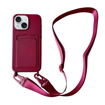 For iPhone 14 Card Slot Liquid Silicone Phone Case with Lanyard(Wine Red)