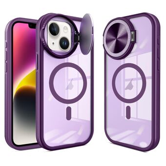 For iPhone 14 Large Window MagSafe Holder Phone Case(Purple)