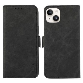 For iPhone 14 ABEEL Frosted Magnetic RFID Leather Phone Case(Black)