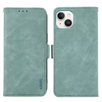 For iPhone 14 ABEEL Frosted Magnetic RFID Leather Phone Case(Cyan)