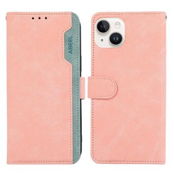 For iPhone 14 ABEEL Color Block Magnetic RFID Leather Phone Case(Pink-Cyan)