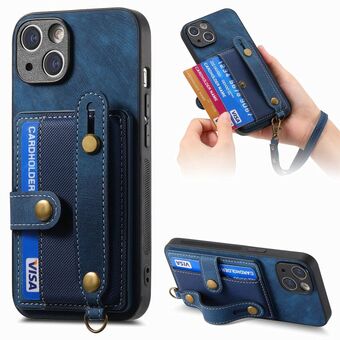 For iPhone 14 Retro Cross Wristband Wallet Leather Back Phone Case(Blue)
