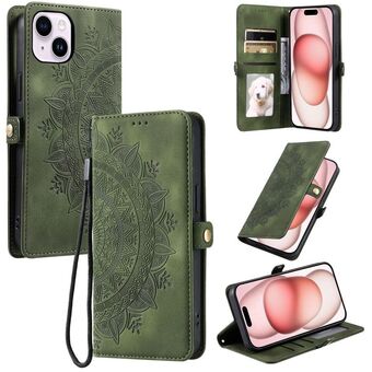 For iPhone 14 Skin Feel Totem Embossed Leather Phone Case(Deep Green)