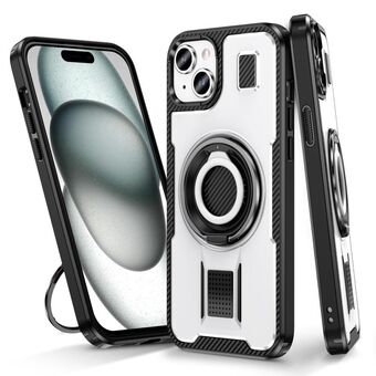 For iPhone 14 / 13 Ring Holder Carbon Fiber PC Hybrid TPU Phone Case(White)