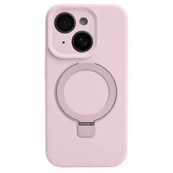 For iPhone 14 Precision Hole Liquid Silicone MagSafe Metal Ring Holder Phone Case(Pink)