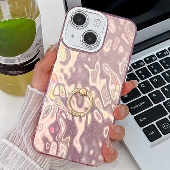For iPhone 14 Plating Glitter Texture Ring Holder TPU Phone Case with Lens Film(White Water Ripples)