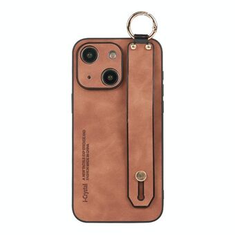 For iPhone 14 Lambskin Wristband Holder Phone Case(Khaki)