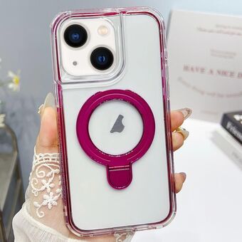 For iPhone 14 MagSafe Holder PC Hybrid TPU Phone Case(Pink Blue)