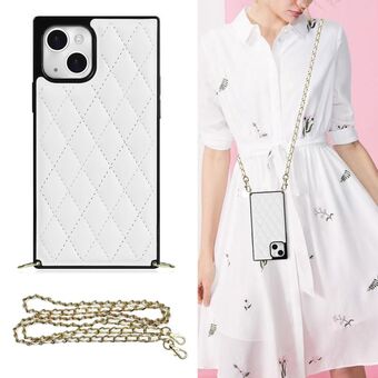 For iPhone 14 Crossbody Rhombic Microfiber Leather Phone Case(White)