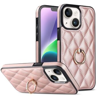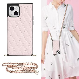 For iPhone 14 Crossbody Rhombic Microfiber Leather Phone Case(Pink)