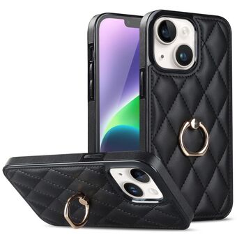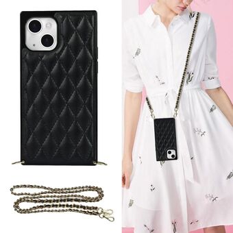 For iPhone 14 Crossbody Rhombic Microfiber Leather Phone Case(Black)