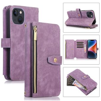 For iPhone 14 Dream 9-Card Wallet Zipper Bag Leather Phone Case(Purple)