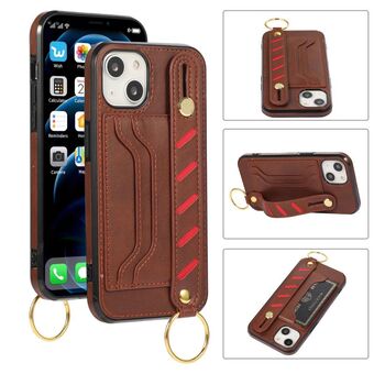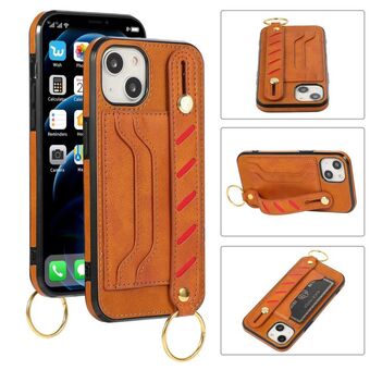 For iPhone 14 Wristband Wallet Leather Phone Case (Brown)