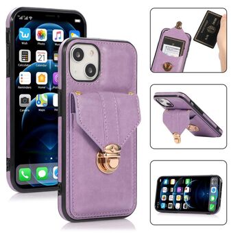 For iPhone 14 Card Slot Lanyard Phone Case (Purple)