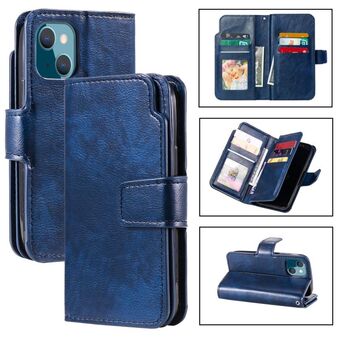 For iPhone 14 Litchi Texture 9 Card Tri-Fold Wallets Leather Phone Case(Blue)