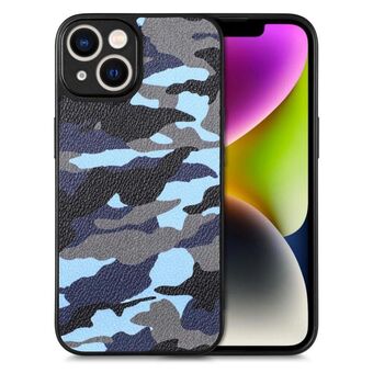 For iPhone 14 Camouflage Back Cover Leather Phone Case(Blue)