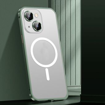 For iPhone 14 Spring Buckle Metal Frosted Magsafe Phone Case(Green)