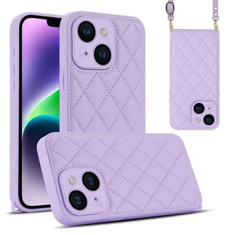 For iPhone 14 Rhombic Texture Phone Case with Dual Lanyard(Purple)