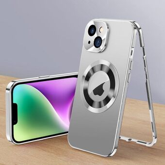 For iPhone 14 Magnetic HD Tempered Glass Phone Case(Silver)