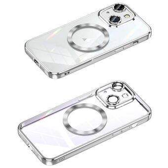 For iPhone 14 MagSafe CD Texture Metal Lens Frame Full Coverage Phone Case(Silver)