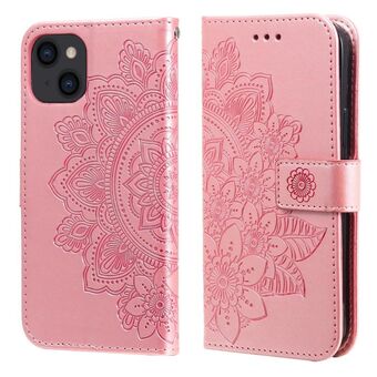 For iPhone 14 7-petal Flowers Embossing Leather Case (Rose Gold)
