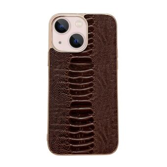 For iPhone 14 Genuine Leather Pinshang Series Nano Electroplating Phone Case (Coffee)