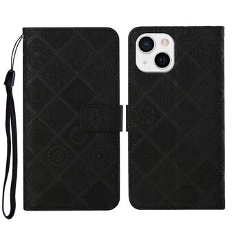 For iPhone 14 Ethnic Style Embossed Pattern Leather Phone Case (Black)