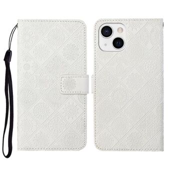 For iPhone 14 Ethnic Style Embossed Pattern Leather Phone Case (White)