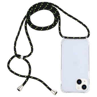 For iPhone 14 Four-Corner Shockproof Transparent TPU Case with Lanyard (Black)
