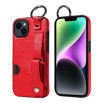 For iPhone 14 Calf Texture Wrist Card Slot Ring Phone Case(Red)