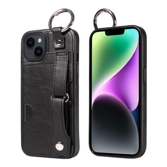 For iPhone 14 Calf Texture Wrist Card Slot Ring Phone Case(Black)