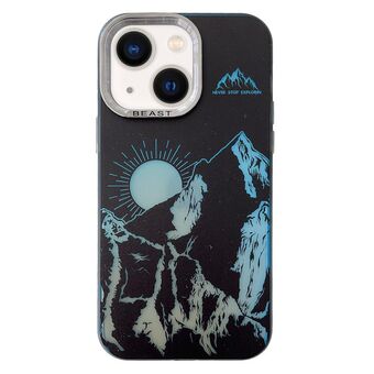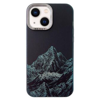For iPhone 14 2 in 1 Aurora Electroplating Frame Phone Case(Snowy Mountains Black)
