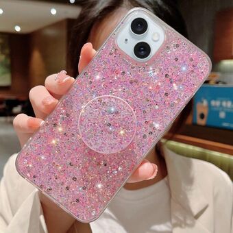 For iPhone 14 Starry Sequin Round Stand Epoxy TPU Phone Case(Pink)