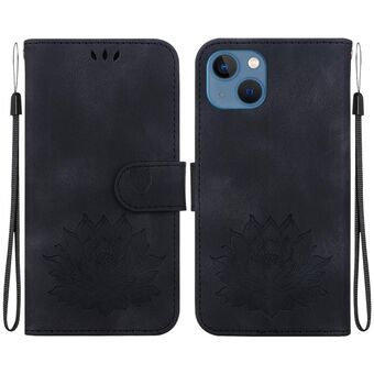 For iPhone 14 Lotus Embossed Leather Phone Case(Black)